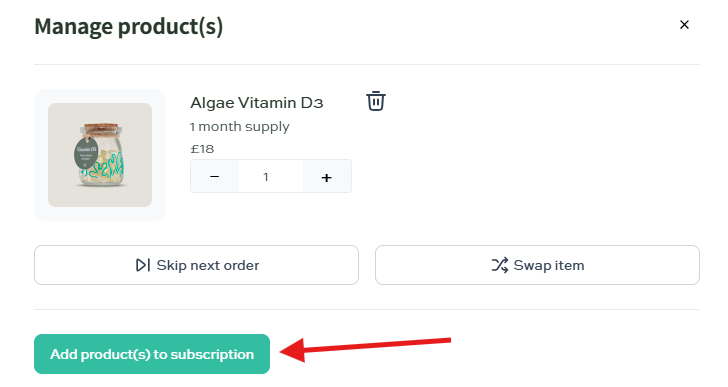 To add another supplement to your subscription, click Add Product(s) to Subscription.
